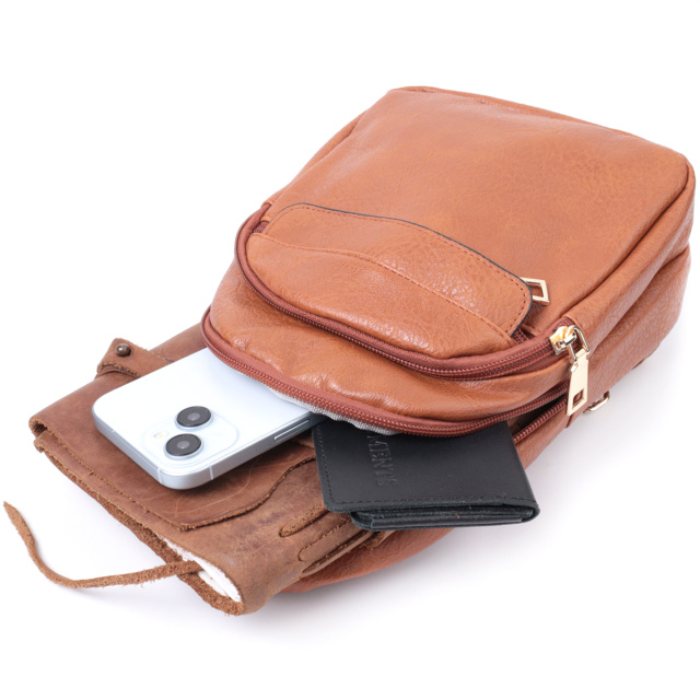 Практичная женская сумка через плечо с отверстием для наушников из экокожи Vintage 22789 Рыжий