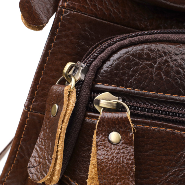 Практичная и стильная кожаная сумка через плечо, созданная специально для мужчин, ценящих удобство и функциональность. Модель выполнена из качественной натуральной кожи и оснащена продуманной системой хранения: одно основное отделение с застежкой-молнией обеспечивает надежное хранение крупных вещей, а на лицевой стороне расположены три кармана на молниях для быстрого доступа к мелким предметам — телефону, ключам, кошельку.