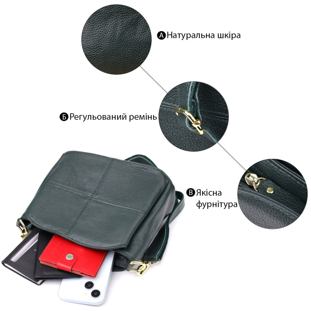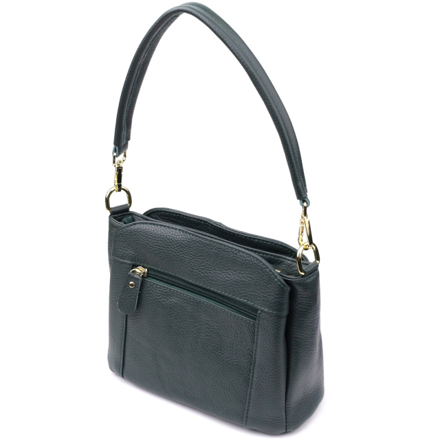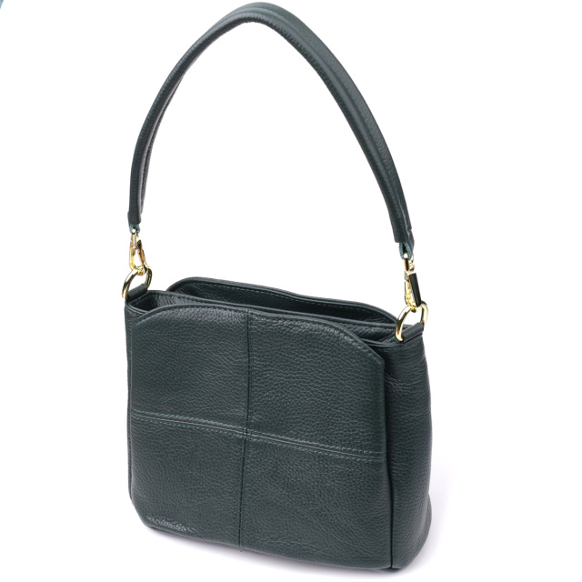 Эта зеленая кожаная сумка — выбор уверенной женщины, которая ценит качество, стиль и практичность в одном аксессуаре.