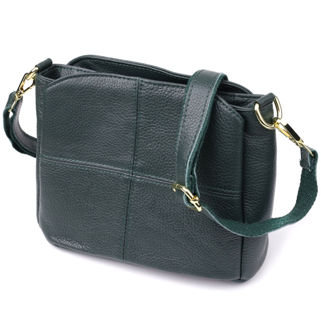 Кожаная сумка для женщин с тремя отделениями Vintage 22977 Зеленый