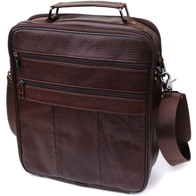 Удобная мужская кожаная сумка из зернистой натуральной кожи сочетает в себе прочность, функциональность и стильный дизайн. Она станет идеальным аксессуаром для тех, кто ценит удобство и организованность в повседневной жизни.