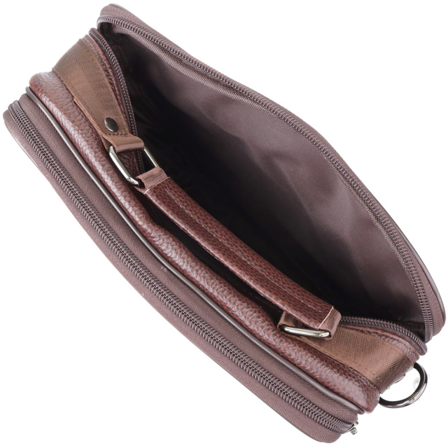 Сумка оснащена кожаной ручкой для переноски в руке и съемным регулируемым текстильным ремешком, который можно настроить по длине и носить сумку через плечо.