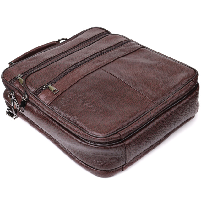 Стильная мужская сумка выполнена из прочной натуральной зернистой кожи флотар, которая отличается выраженной текстурой и высокой износостойкостью. Элегантный внешний вид дополнен фурнитурой цвета серебра, придающей модели сдержанный стиль.