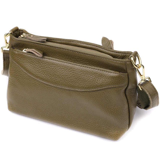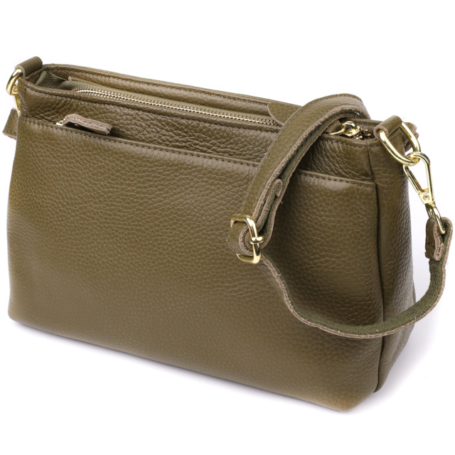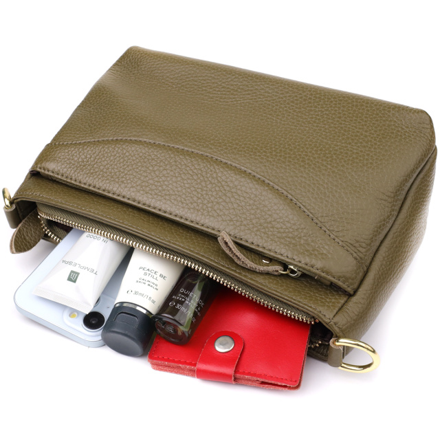 Эта оливковая кожаная сумка с формоустойчивым дном — идеальный выбор для женщины, которая ценит гармонию стиля, функциональности и качества.