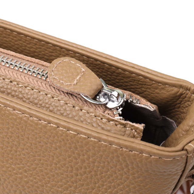 Элегантная бежевая сумка из натуральной кожи — это гармоничное сочетание стиля, удобства и универсальности. Модель оснащена одним основным отделением, которое закрывается на молнию, надёжно защищая содержимое. Внутри предусмотрены два функциональных кармана: потайной карман на молнии — для хранения документов или других ценных предметов, и открытый карман — для вещей, которые должны быть под рукой.