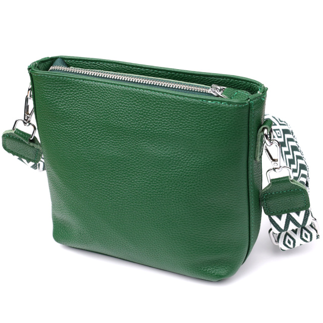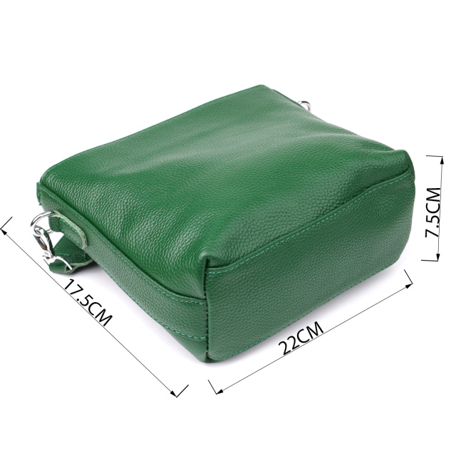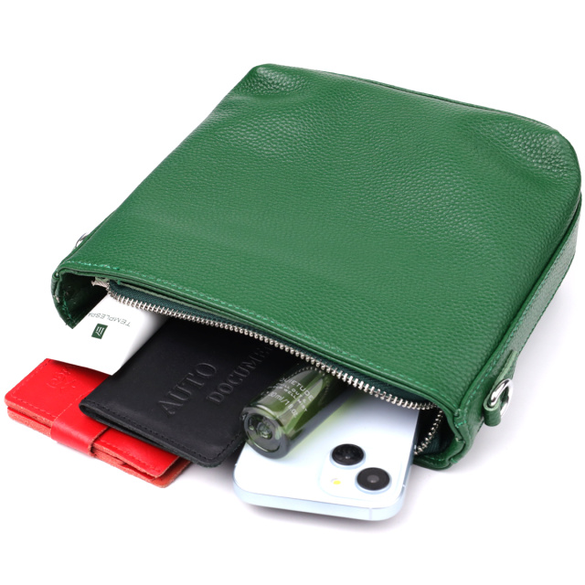 Оригинальная и стильная сумка из натуральной кожи в насыщенном зелёном цвете — эффектный акцент в вашем повседневном или деловом образе. Модель оснащена одним основным отделением, которое надёжно закрывается на молнию. Внутри расположены два удобных кармана: потайной на молнии для хранения ценных мелочей и открытый карман — для предметов, к которым нужен быстрый доступ.