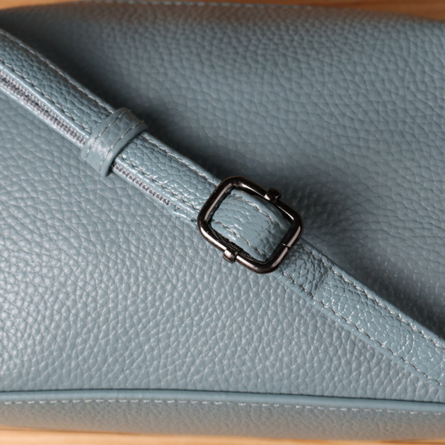 Фурнитура в цвете темного серебра эффектно контрастирует с голубым фоном, подчеркивая современность модели. Благодаря съемному регулируемому ремню, сумку удобно носить через плечо или на плече.