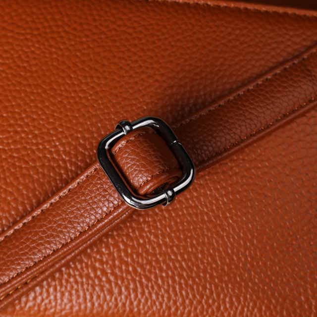 Сумка выполнена из качественной, мягкой и приятной на ощупь натуральной кожи насыщенного рыжего оттенка, который придает изделию теплоту и выразительность. По бокам находятся два прилегающих кармана, также закрывающихся на молнии, что добавляет функциональности и помогает лучше организовать пространство.
