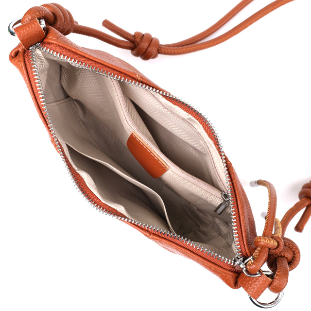 Модель оснащена одним основным отделением, которое надежно закрывается на молнию, обеспечивая сохранность ваших вещей. Внутри предусмотрены два удобных кармана: потайной на молнии — для ценных мелочей и документов, а также открытый карман для быстрого доступа к часто используемым предметам.