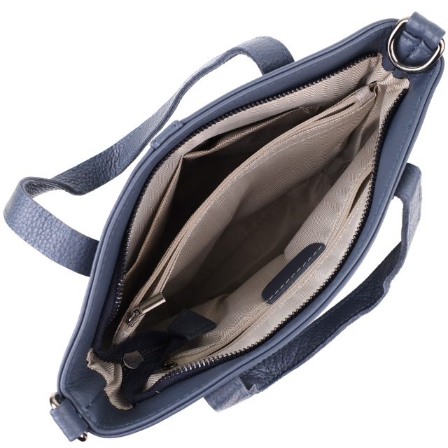 Сумка закрывается на молнию и имеет основное отделение с удобной организацией: потайной карман на молнии, карман-перегородка на молнии и открытый карман для мелочей. Твердое дно помогает сумке сохранять форму, а фурнитура цвета темного серебра подчеркивает благородный характер модели.