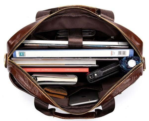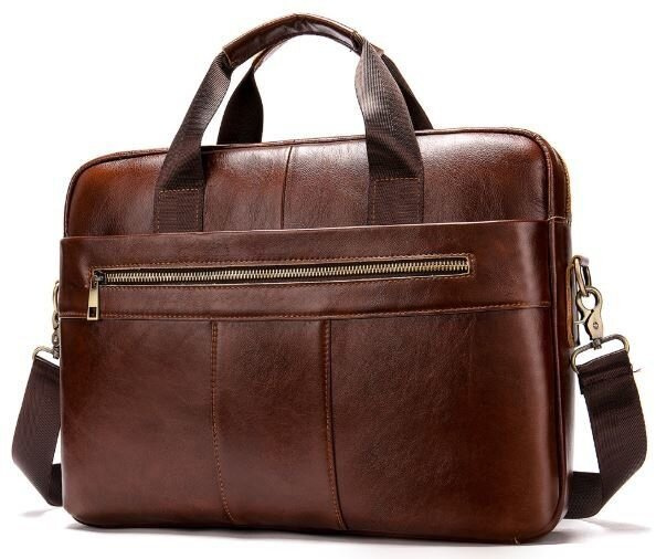 Деловая мужская сумка из натуральной кожи в классическом дизайне. Аксессуар можно носить как в руках с помощью ручек так и на плече есть съемный текстильный ремешок. Модель дополнена металлической фурнитурой золотистого цвета. По краям аксессуар прошит рыжей нитью. Вы должны понимать, что немного переплатив за кожану сумку вы выиграете в том, что она прослужит вам намного дольше чем текстильные или из заменителя. Аксессуар удобно держать в руке. Сумка не тяжелая и имеет огромный функционал. В ней вам будет удобно носить документы или планшет или книгу. В сумку легко поместится ноутбук и она будет вам прекрасным помощником на деловых встречах или собраниях. С такой сумкой будет удобно ездить в командировки или мелкие путешествия. Она подчеркнет ваш статус и чувство стиля. Сумка будет желанным подарком для любого мужчины. Аксессуар упакован в тканевой мешок, что защищает его от пыли и влаги во время того как вы его не используете.