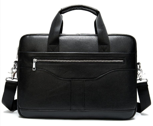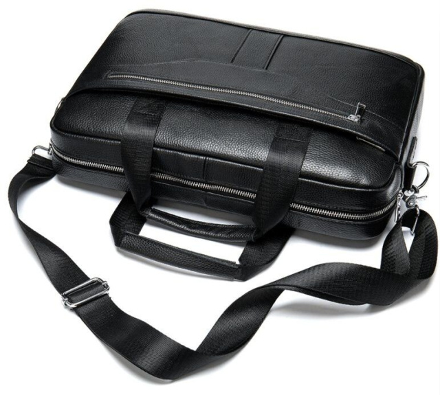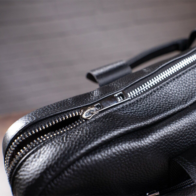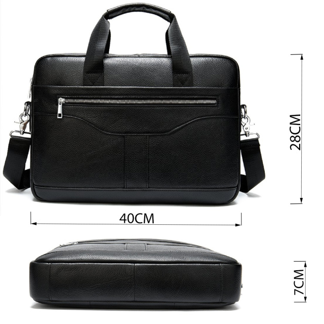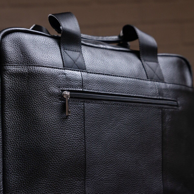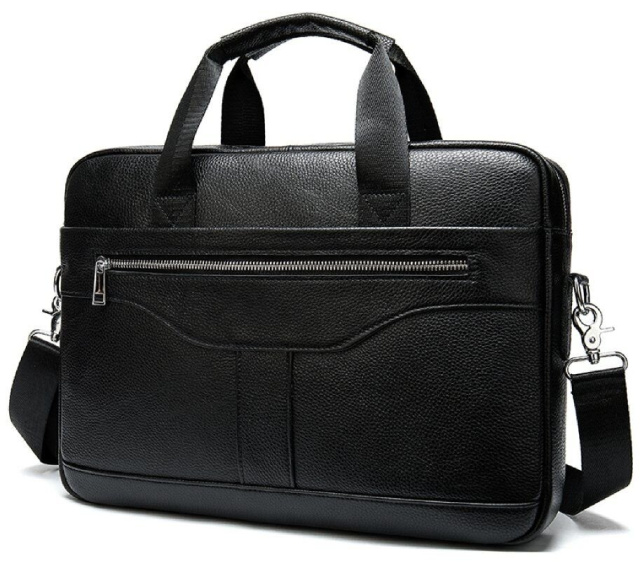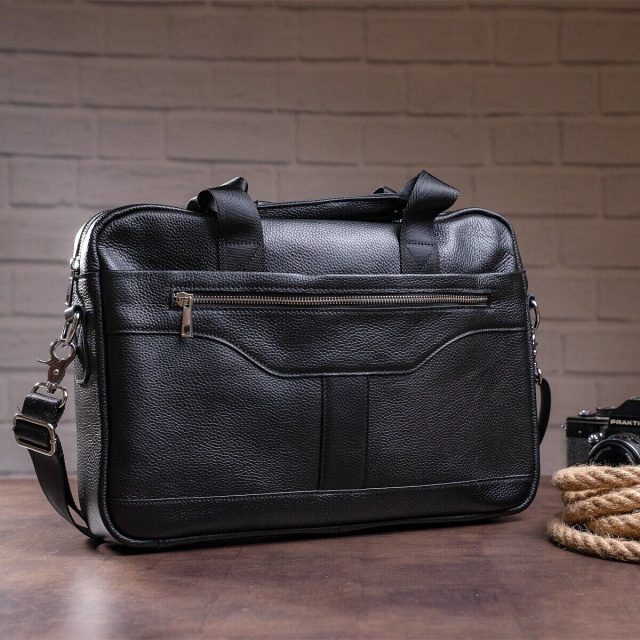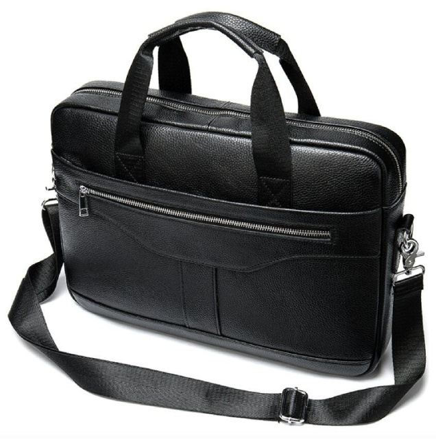 Деловая мужская сумка из натуральной кожи в классическом цвете. Аксессуар можно носить как в руках с помощью ручек так и на плече есть съемный текстильный ремешок. Модель дополнена металлической фурнитурой серебристого цвета. По краям аксессуар прошит черной нитью. Вы должны понимать, что немного переплатив за кожану сумку вы выиграете в том, что она прослужит вам намного дольше чем текстильные или из заменителя. Аксессуар удобно держать в руке. Сумка не тяжелая и имеет огромный функционал. В ней вам будет удобно носить документы или планшет или книгу. В сумку легко поместится нетбук и она будет вам прекрасным помощником на деловых встречах или собраниях. С такой сумкой будет удобно ездить в командировки или мелкие путешествия. Она подчеркнет ваш статус и чувство стиля. Сумка будет желанным подарком для любого мужчины. Аксессуар упакован в тканевой мешок, что защищает его от пыли и влаги во время того как вы его не используете.