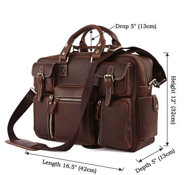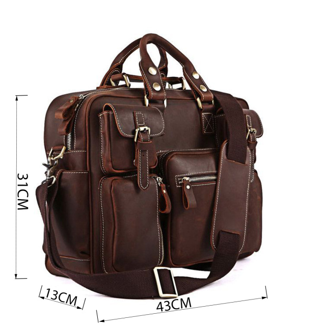 Материал: натуральная кожа с эффектом старины; Размер: 43 на 31 на 13см. ; Цвет: темнокоричневый; Подходит как мужчине так и женщине....