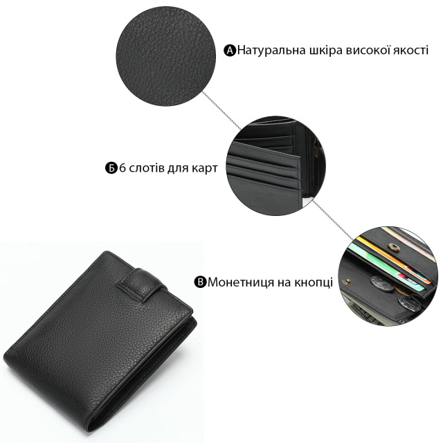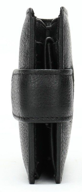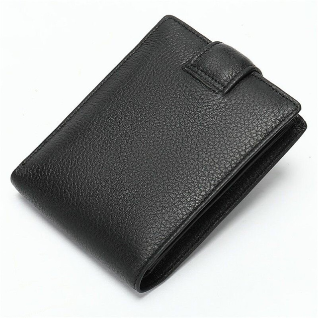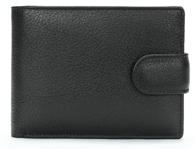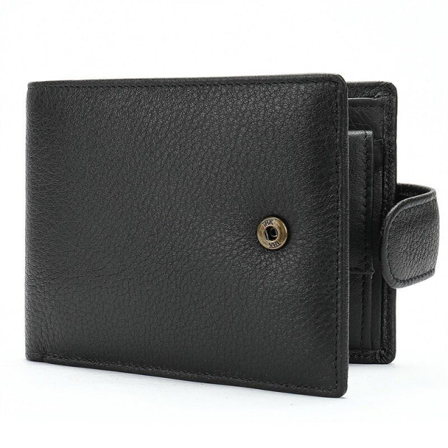 Простой и классический бумажник. Портмоне закрывается на кожаный хлястик с кнопкой. Модель имеет минимальный размер и легко поместится в карман брюк. Аксессуар упакован в тканевый пылезащитный чехол. Кошелек будет прекрасным и незаменимым подарком для любого мужчины.