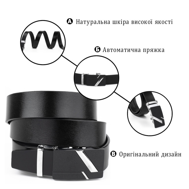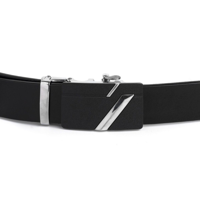 Кожаный ремень для настоящих мужчин с продуманным до мелочей дизайном. Ремень из плотной кожи. Дополнен аксессуар солидной пряжкой автомат из надежного металлического сплава черной матовой заливкой и серебристыми диагональными линиями. Ремень долго проносится и станет прекрасным завершением вашего образа.