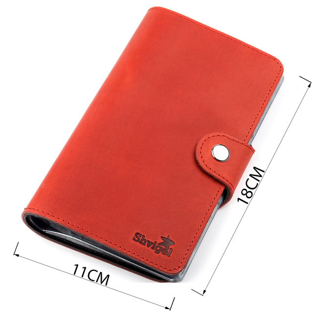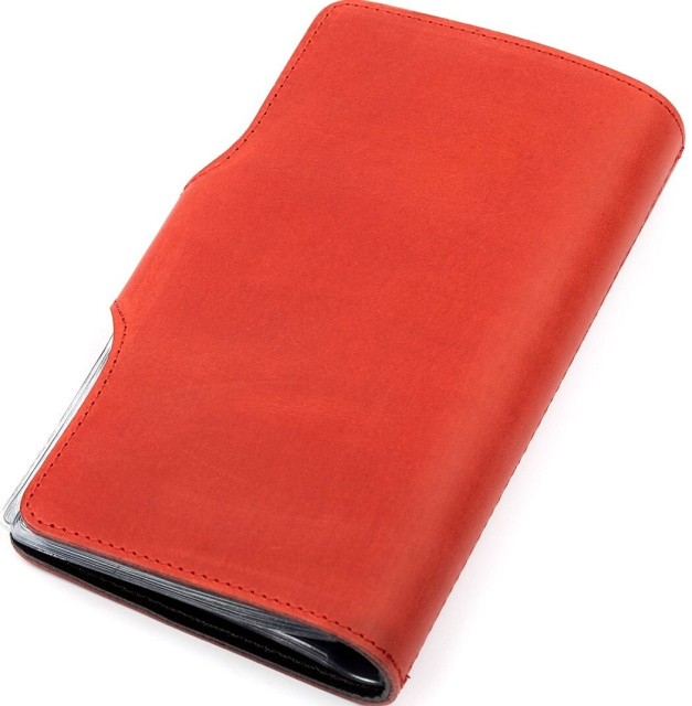 Яркая вместительная визитница из натуральной винтажной кожи особенностью, которой есть потертости и неоднородность окраса. Со временем кожа затирается и шлифуется, так что некоторые следы исчезнут сами собой. Аксессуар прошит прочной красной нитью, что отлично вписывается в дизайн и продлевает срок службы изделия.
