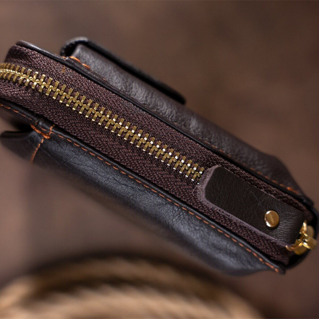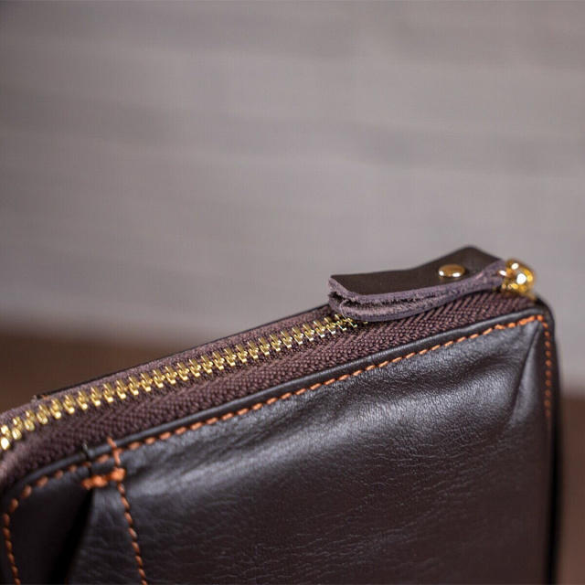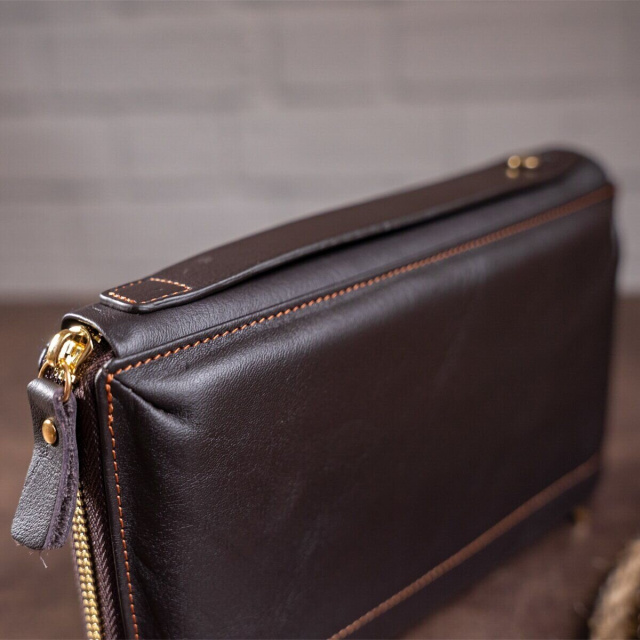Суперстильная барсетка для мужчин. В барсетку вы можете положить все самое необходимое и все будет под рукой. Внизу аксессуара есть ремешок для носки на руке, что очень удобно в использовании. Кожа мягкая на ощупь. Фурнитура в клатче золотистого цвета. По краям аксессуар прошит коричневой нитью. В барсетку можно поместить свой телефон, чтоб не мешал в руках.