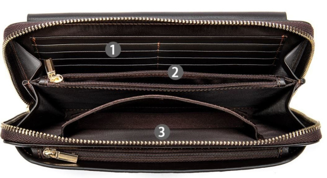 - 2 отсека для купюр с перегородкой монетницей на молнии;