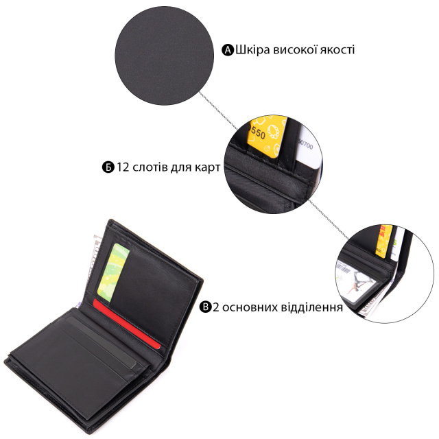 Качественное портмоне-картхолдер с достаточным количеством ячеек для кредиток. Изделие идеально сочетает в себе два самых важных аксессуара современного человека. Картхолдер очень вместительный. В модели отсутствует застежка и кармашек для монет. В портмоне поместится достаточное количество купюр разного номинала. Аксессуар выполнен в мягкой коже и в классическом черном цвете с простым и непринужденным дизайном. В комплекте идет пылезащитный чехол. Картхолдер - лучший подарок как для себя, так и на подарок.