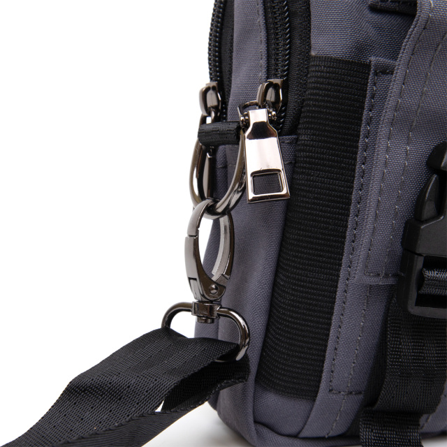 Изделие выполнено из нейлона серого цвета. Материал очень легкий и практичный, хорошо подходит для активного повседневного использования. Компактный размер делает сумку удобной для телефона, документов, ключей, кошелька и других нужных мелочей.