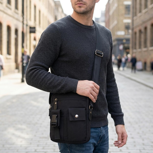 Текстильная сумка через плечо — практичный аксессуар для города, документов, ежедневных дел и поездок. Модель сочетает в себе удобный вертикальный формат, продуманную организацию пространства и универсальный внешний вид, поэтому хорошо подходит для повседневного использования.