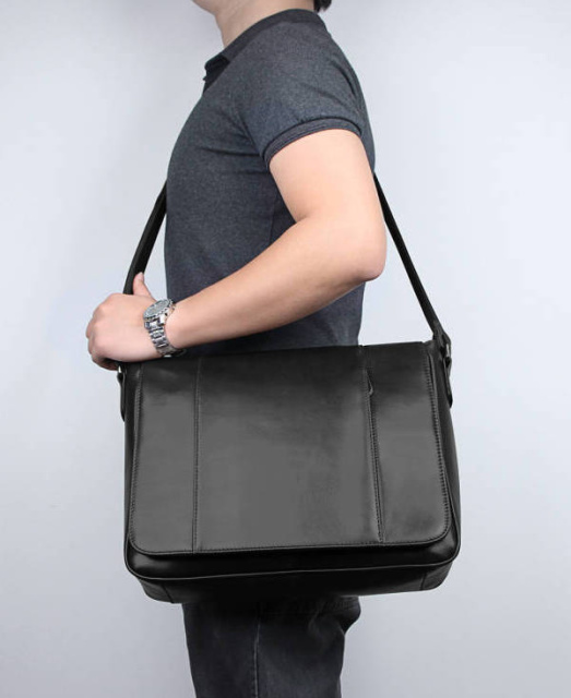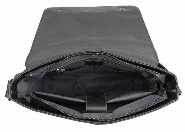 Великолепная мужская сумка черного цвета. Аксессуар выполнен из натуральной высококачественной кожи, которая отличается легким, едва заметным блеском. Цвет фурнитуры: темное серебро. На лицевой стороне расположен небольшой карман на молнии. На задней внешней стороне находится вместительное отделение на молнии. Сумка закрывается при помощи клапана на двух магнитных кнопках, а также молнией. Под клапаном расположено отделение на молнии. Подкладка выполнена из прочного текстильного материала коричневого цвета.