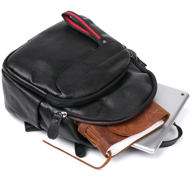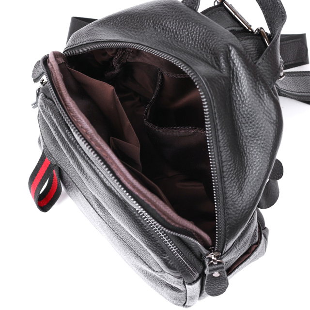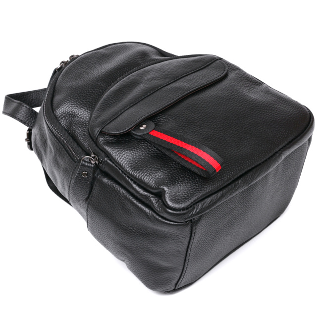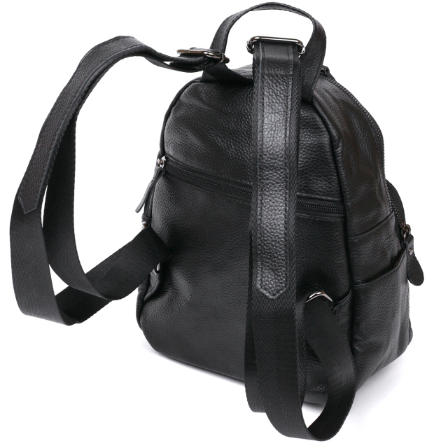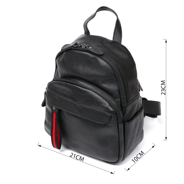 Небольшой женский рюкзак в стильном и модном дизайне. Материал изготовления – натуральная кожа высокого класса с повышенной прочностью. Рюкзак имеет одно основное отделение и несколько внешних карманов, что очень удобно и практично. Цвет изделия – классический черный, фактура – зернистая. Данная модель несомненно станет отличным подарком для дочери, подруги или девушки.