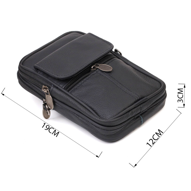 Вертикальная мужская сумка на пояс, небольшого размера из натуральной кожи. Аксессуар отлично подойдет как для работы, так и в дорогу. Сумка состоит из двух отделений, что закрываются на молнию и двух карманов снаружи. Носить сумку можно на поясе, есть специальная кожаная петелька с тыльной стороны, а также в комплекте идет съемный текстильный плечевой ремешок. Модель очень практичная и универсальная. Изделие станет прекрасным подарком для любого мужчины.