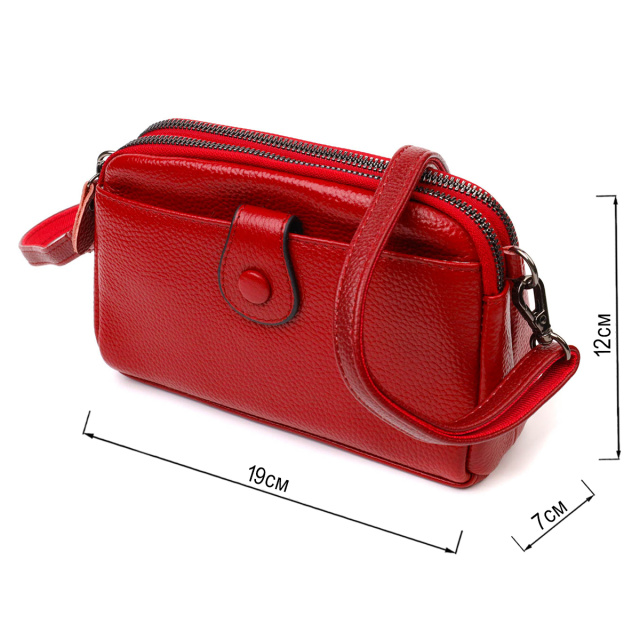 Высокого качества небольшая сумка-клатч из натуральной мягкой кожи. Изделие очень удобное, можно носить на плече, через плечо, под рукой и на кисти. Модель дополнена фурнитурой цвета темного серебра. Аксессуар имеет два основных отделения на молниях, в которых два кармашки - на молнии и один открытого типа, также снаружи находятся два кармана. В комплекте к сумке идет съемный плечевой ремень и съемный кистевой ремень. Закрывается модель на молнию.