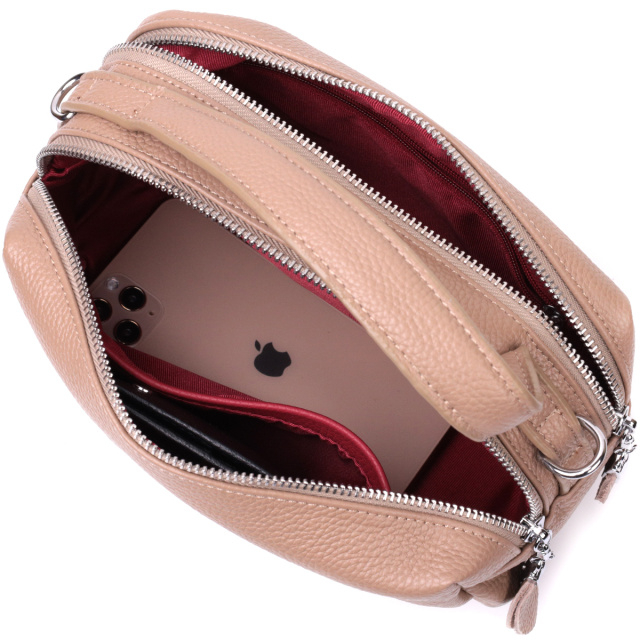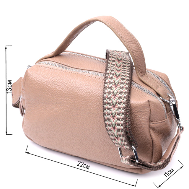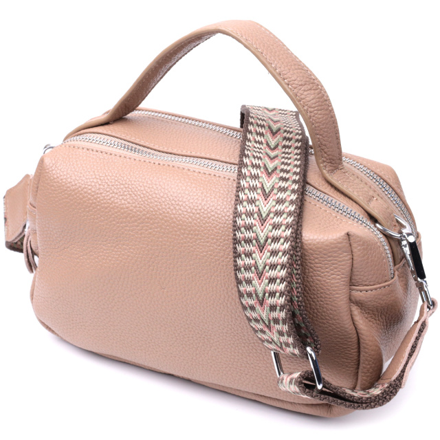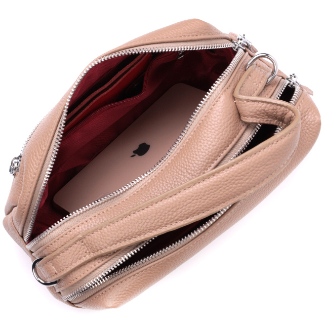 Прямоугольная сумка для женщин на два отделения из натуральной кожи Vintage 22345 Бежевая