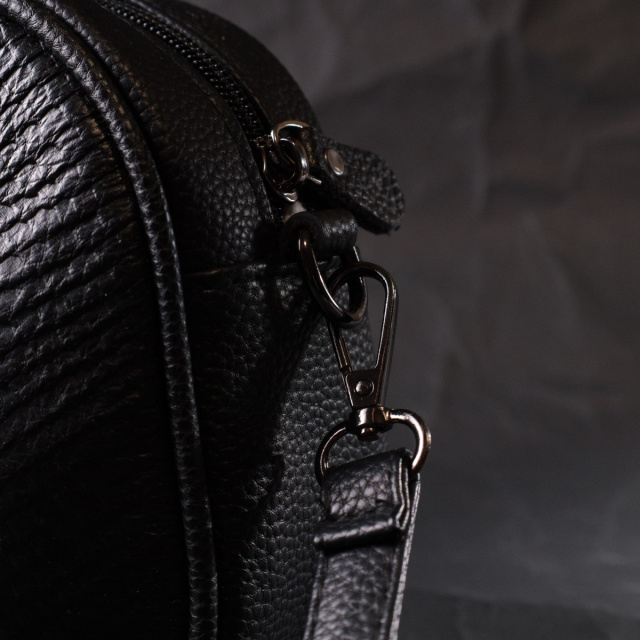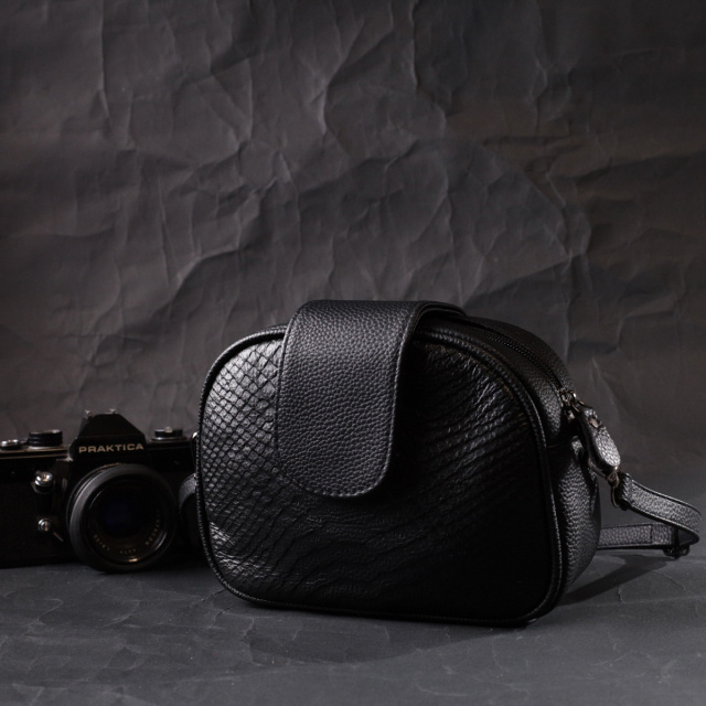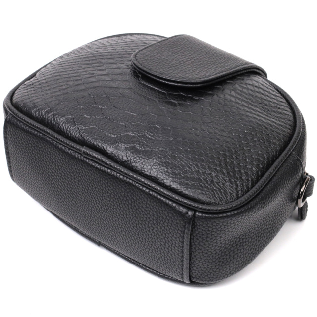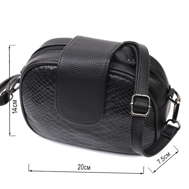Фактурная сумка полукруглой формы для стильных и независимых женщин из натуральной кожи с тиснением под змею. Аксессуар состоит из одного основного отделения внутри которого потайной карман на молнии и карман открытого типа, а также кармана на молнии, снаружи на тыльной стороне. Носить сумку можно в руке, на плече и через плечо, для этого имеется кожаный съемный ремень. В изделии использована качественная фурнитура цвета темного серебра. Универсальный вариант сумки как на вечер так и в качестве сумочки на каждый день.