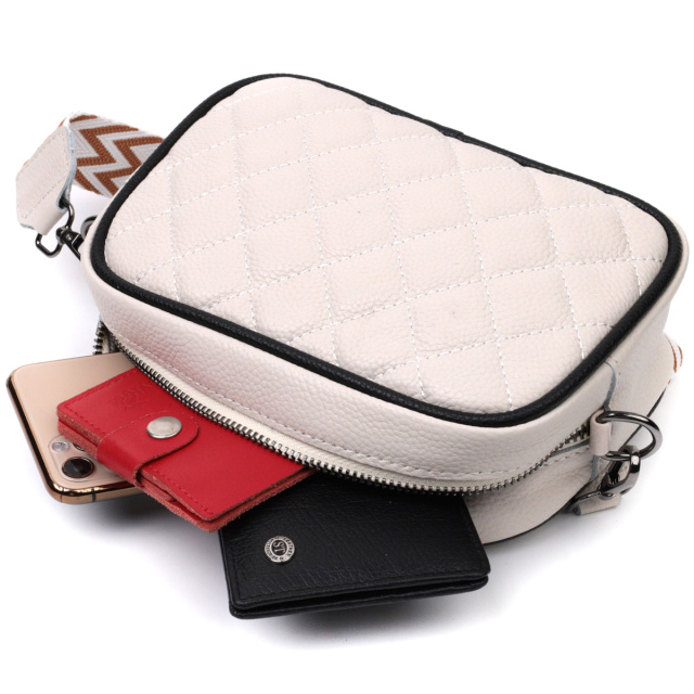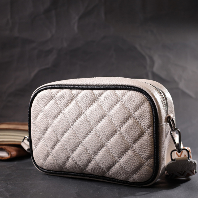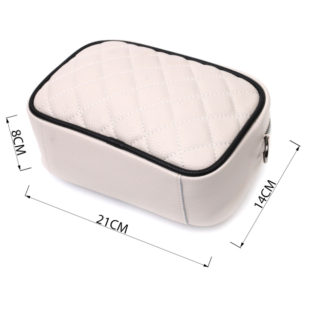 Стильная женская стеганная ромбами на лицевой стороне сумка. Изделие пошито из качественной натуральной кожи, которая долго носится и не теряет свой первоначальный вид. Аксессуар состоит из одного основного отделения внутри которого расположен карман открытого типа и карман на молнии, также снаружи расположен карман на молнии, на тыльной стороне . Носить сумку можно в руке как клатч, на плече и через плечо, для этого имеется текстильный съемный ремень. В изделии использована качественная фурнитура цвета темного серебра. Универсальный вариант сумки как на вечер так и в качестве сумочки на каждый день.