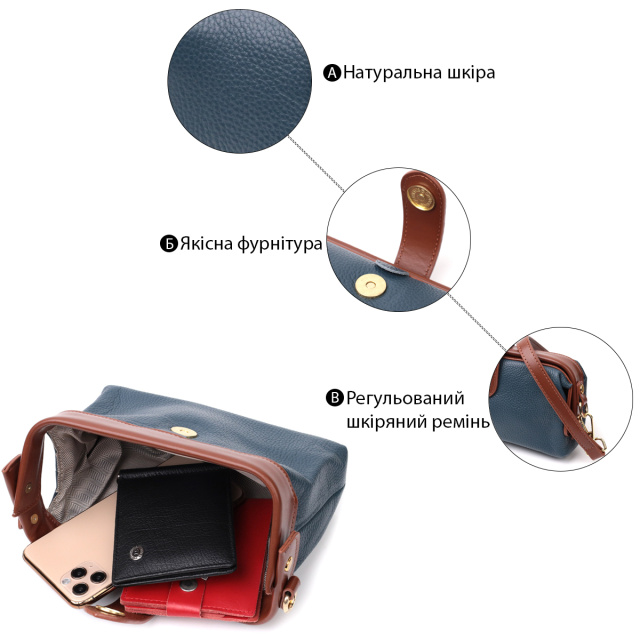 UA MarketКиївJANAВсе товарыТовари та послугиСумки женскиеКожаные женские сумкиОригинальный кожаный клатч в модном цвете с интересной защелкой Vintage 22428 Синий