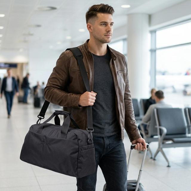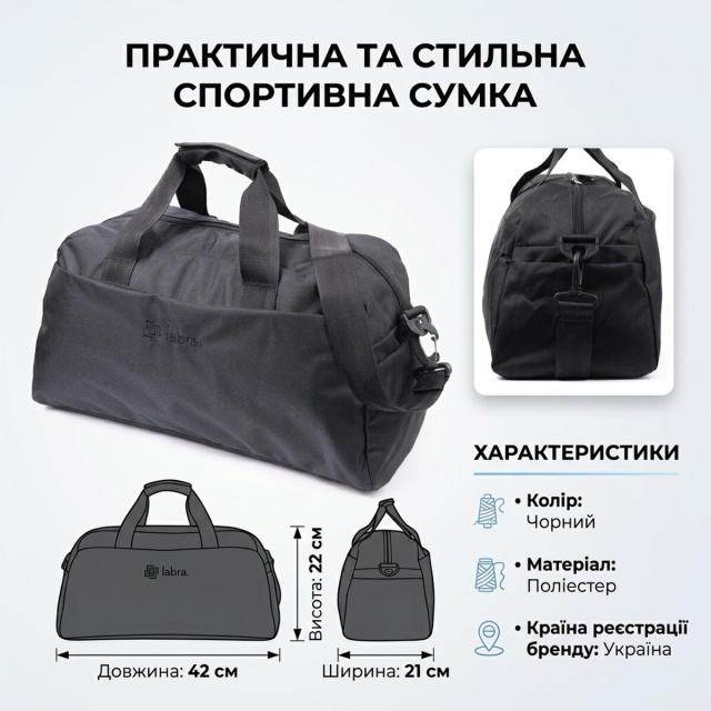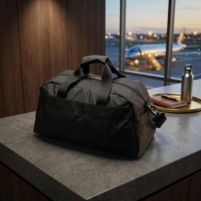 Изделие выполнено из качественного полиэстера черного цвета. Материал отличается прочностью и износостойкостью, поэтому хорошо подходит для активного использования. Универсальный черный цвет делает модель практичным выбором для поездок, тренировок и повседневных дел.