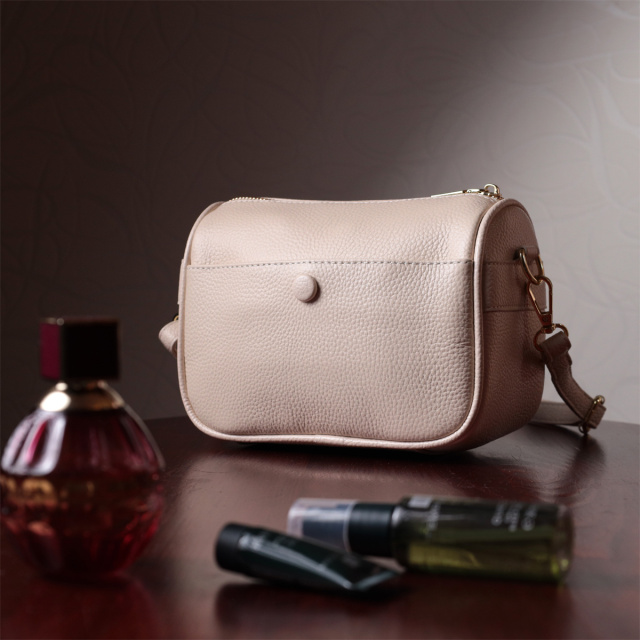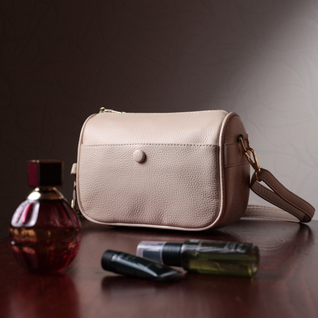 Красивая женская сумка на все случаи из натуральной качественной кожи. Аксессуар состоит из основного отделения, которое закрывается на молнию, а также двух карманов снаружи на лицевой и тыльной стороне. Носить сумку можно в руке, под рукой, на плече и через плечо, для этого имеется кожаный съемный ремень. В аксессуаре использована качественная фурнитура золотистого цвета. Отличный вариант для подарка близким и дорогим девушкам и женщинам.