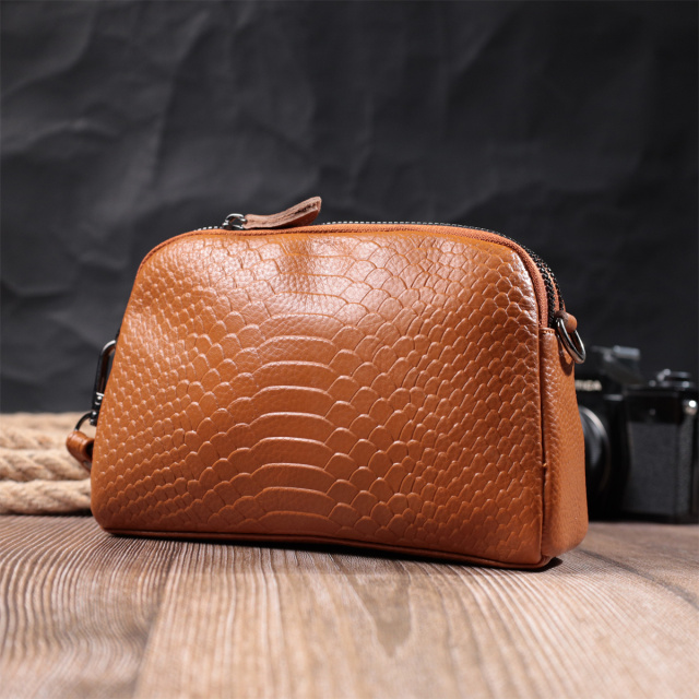 Стильная женская сумка из натуральной мягкой кожи высокого качества с тиснением под змею. Изделие очень удобное, можно носить на плече и через плечо, на кисти и просто под рукой как клатч. Модель дополнена фурнитурой цвета темного серебра. Аксессуар имеет два основных отделения в которых два кармашки - один на молнии и один открытого типа, а также карман на молнии снаружи, на тыльной стороне. Идеальный вариант для любой девушки которая ценит качество и имеет превосходный вкус.