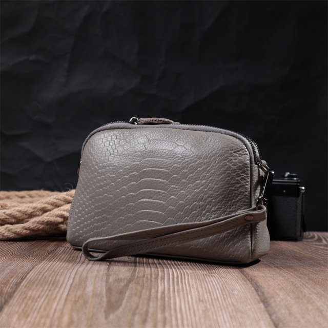 Цвет: серый; Материал: натуральная кожа; Размер (ШхВхГ, см): 19х12х7 см; Страна производитель: Китай; Бренд: Vintage. Особенности: - два...