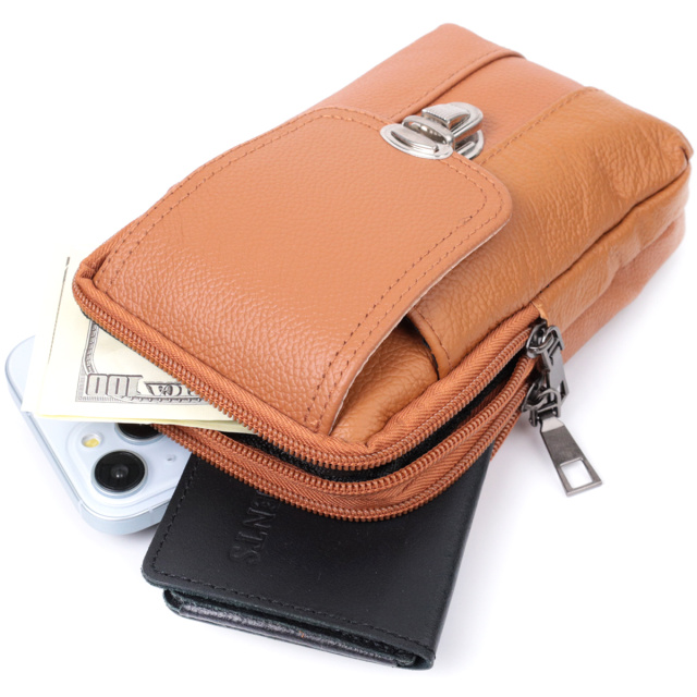 Мужская сумка на пояс на два отделения из натуральной кожи Vintage 22737 Рыжий
