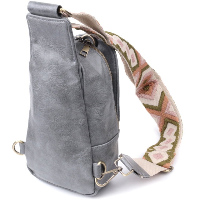 Женская небольшая сумка через плечо на каждый день из качественной экокожи, которая является альтернативой натуральной коже. Данная модель состоит из одного основного отделения которое закрывается на молнию и в котором находятся три кармана для кредитных карт внутри, а также одного потайного кармана на лицевой стороне, что закрывается на карабин. Акцентом данной модели является удобный регулируемый плечевой ремешок в этническом стиле, что очень модно уже несколько сезонов. Экокожа - высококачественная альтернатива натуральному материалу, которая очень устойчива к трению, к низким температурам, отлично носится в отличии от других искусственных материалов, а также имеет гипоаллергенный состав в отличии от натуральной кожи. Мода не стоит не месте, на смену классическим сумкам приходят новые модели, которые обусловлены современным временем, именно такой является слинг сумка - удобная, практичная, небольшая но вместительная и главное качественная.