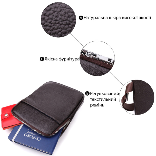 UA MarketКиївJANAВсе товарыТовари та послугиСумки мужскиеМужские сумкиКожаные мужские сумкиМужская вертикальная сумка из натуральной кожи Vintage 22863 Коричневый