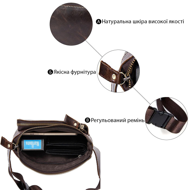 Якісна чоловіча сумка на пояс з натуральної шкіри високої якості. Сумки такого плану завоювали свою популярність серед клієнтів. Оптимальна модель в дорогу або подорож. З такою сумкою все необхідне буде завжди під рукою і в безпеці. Така сумка буде прекрасним подарунком для близької людини, як для чоловіка, так і для жінки. Аксесуар упакований в текстильний мішок, що захищає його від попадання пилу і зносу.