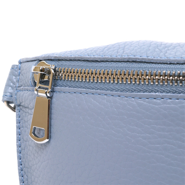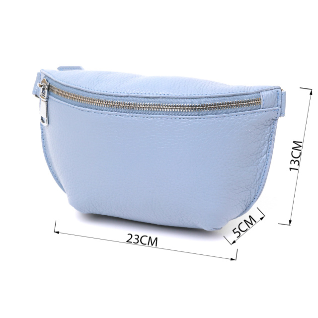 Стильна красива жіноча сумка на пояс у ніжному блідо-блакитному кольорі та зернистій фактурі. Матеріал виготовлення – натуральна шкіра з відмінними показниками міцності та стійкості до зношування. Фурнітура зроблена у кольорі під срібло. Ремінь виконаний також зі шкіри та може регулюватися по довжині. Така бананка стане гарним та практичним подарунком для близької людини.