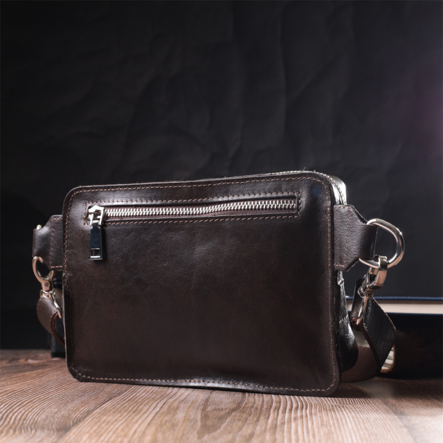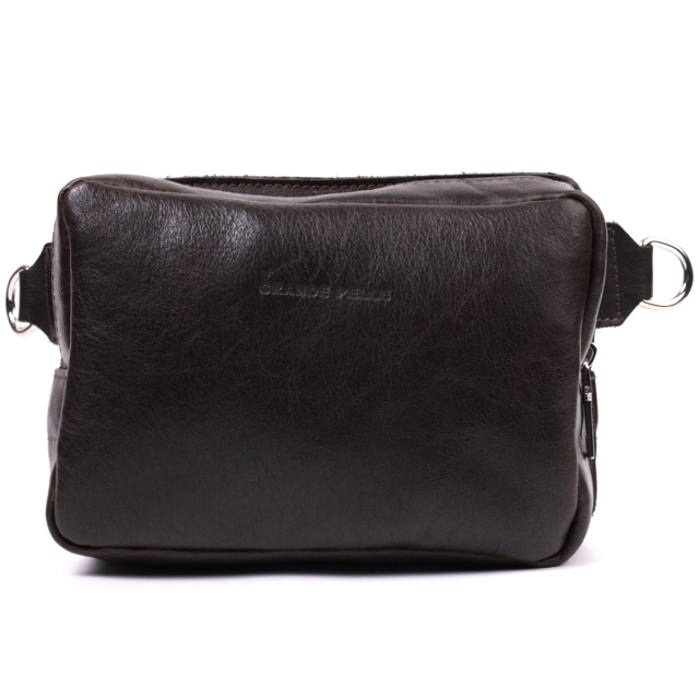 Прямокутна сумка бананка з якісної натуральної шкіри GRANDE PELLE 22575 Коричневий
