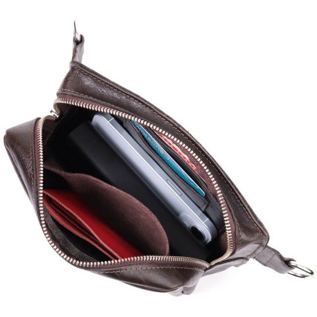 На вигляд невелика сумка-бананка, але повірте дуже містка та зручна. Модель унісекс, підійде як жінкам, так і чоловікам. Носити таку сумку можна на поясі, а також через плече, це дуже зручно у подорожах, коли всі найцінніші речі мають бути під рукою. Виріб виконаний виключно з натуральної італійської шкіри найвищої якості, яка має благородний блиск та приємну фактуру. Сумка доповнена якісною фурнітурою срібного кольору, шви рівні та акуратні. Аксесуар упакований у стильну фірмову сумку з повсті, що дуже зручно, якщо аксесуар призначений на подарунок.