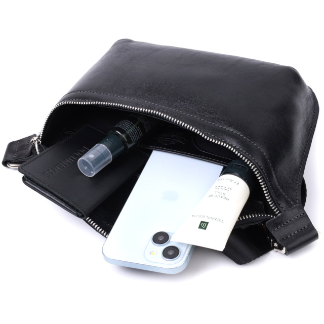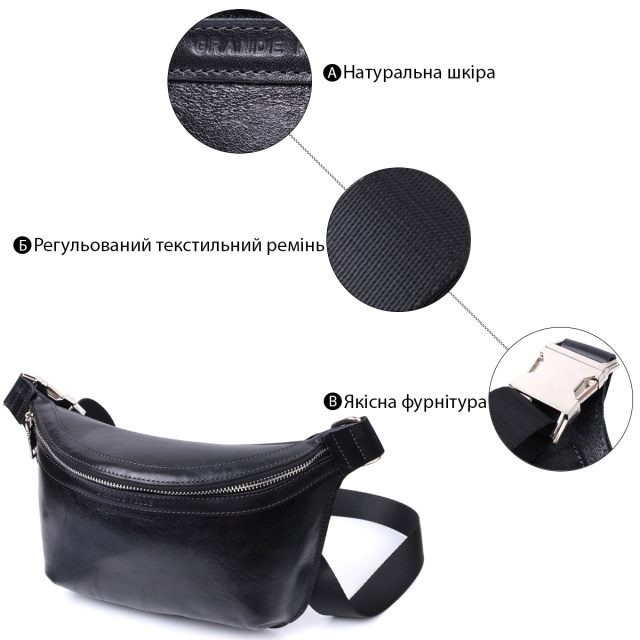 Чудова поясна сумка з натуральної шкіри, яка відмінно підійде як жінкам, так і чоловікам. Складається модель з одного просторого відділення, в якому знаходиться кишеня відкритого типу та кишені на тильній стороні зовні. Вона виглядає дуже сучасно, завдяки красиво підібраній фурнітурі кольору срібла, елегантним рівним рядкам та якісній шкірі, що переливається на сонці. Ідеальний подарунок для близької людини. Сумочка упакована у якісний фірмовий повстяний чохол.