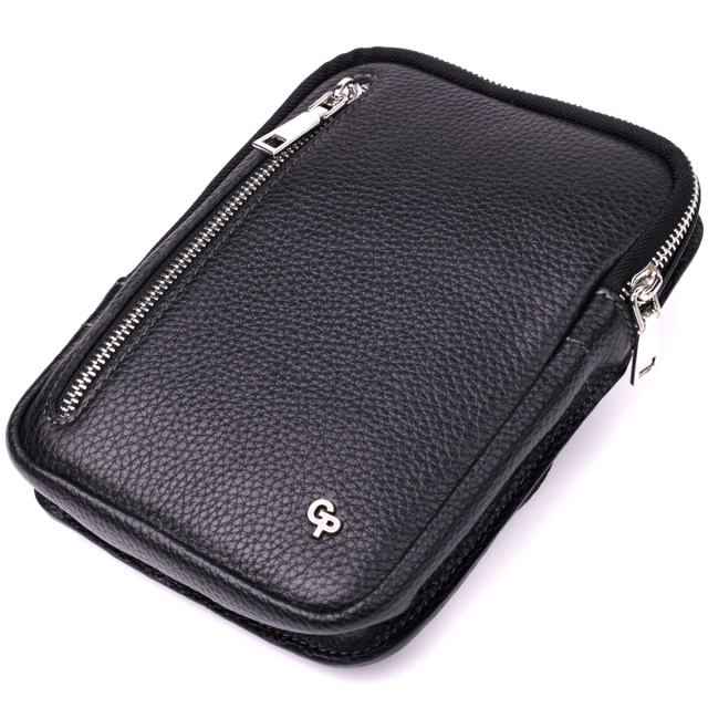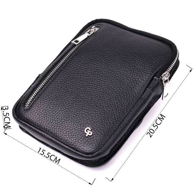 Прямокутна сумка бананка з якісної натуральної шкіри GRANDE PELLE 22877 Чорний