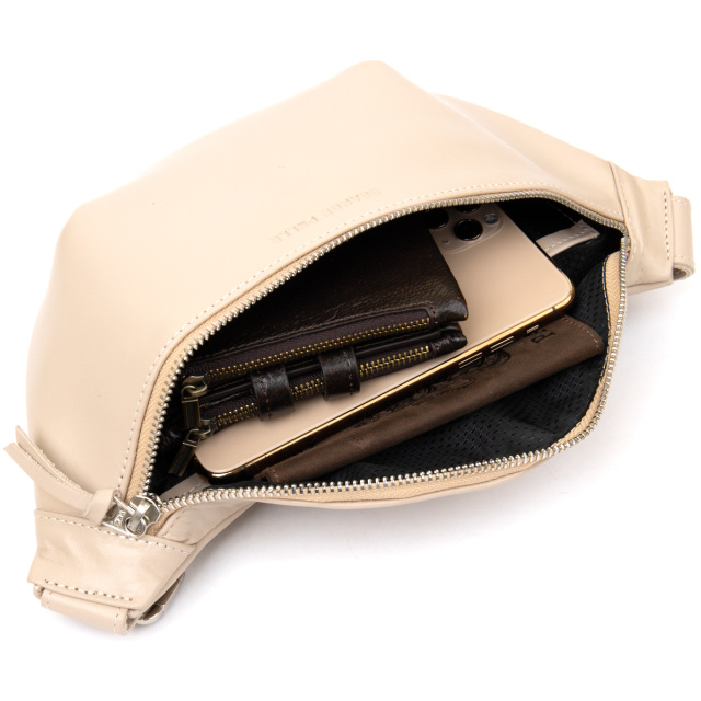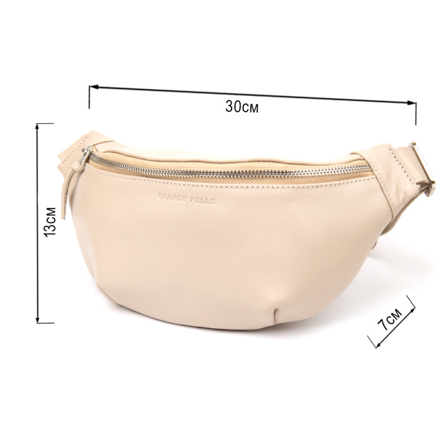 Універсальна шкіряна сумка на пояс високої якості виконання. Має містке основне відділення і невелику легкодоступну кишеню на блискавці на тильній стороні. Пояс легко регулюється і також виконаний з натуральної шкіри. Дана модель відмінно впишеться в гардероб як чоловіків, так і жінок. Упакована сумка в красивий фірмовий чохол-сумку.