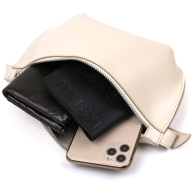Стильна жіноча бананка із натуральної шкіри Shvigel 16391 Бежевий