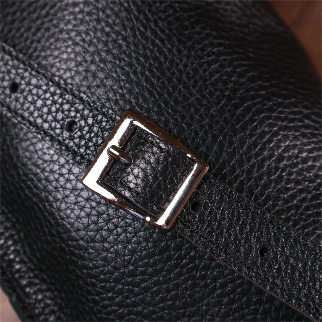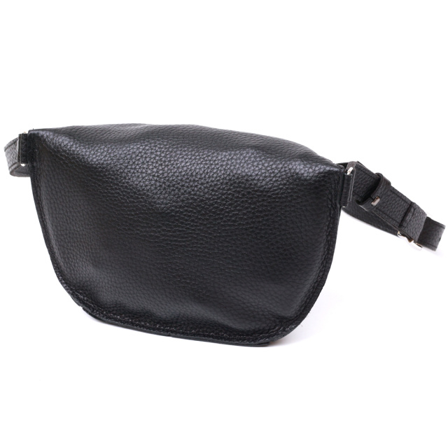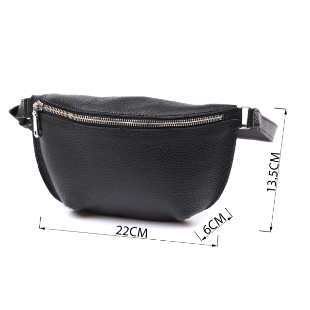 Чудова жіноча сумка на пояс у строгому та лаконічному дизайні. Виконано цю модель з натуральної шкіри, висока якість якої видно навіть неозброєним оком. Колір виробу - універсальний чорний, що практично, фактура - м'яка зерниста. Для зручності передбачена можливість відрегулювати пояс згідно Вашої фігури.