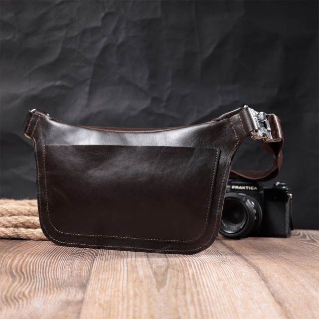 Стильна бананка для чоловіків із натуральної шкіри GRANDE PELLE 22814 Коричневий